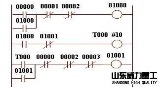 ① 當狀態(tài)3有效時,計數(shù)器計數(shù)(減1),若計數(shù)次數(shù)未到設(shè)定值,C001=0,返回到狀態(tài)1,繼續(xù)循環(huán);