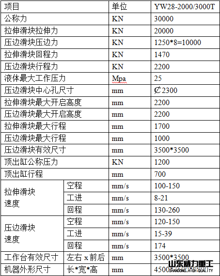 2800噸封頭壓力機(jī)(封頭拉伸機(jī))的技術(shù)參數(shù):(僅供參考)